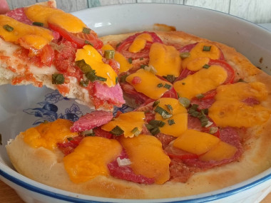 Спасибо автору. Ура!!! Девочки!!! Со второго раза ( пробовала другой рецепт с дрожжевым тестом) я справилась с дрожжами. Использовала готовую томатную пасту с базиликом и в начинку добавила колбасы, которую любит муж...Люблю и в пиццерии пиццу на толстом тесте... Поэтому рецепт мне прямо зашёл. Конечно, готовила в первый раз, поэтому не идеально, но семья сказала "вкусно". Я довольна. В дальнейшем планирую экспериментировать с толщиной пиццы и начинкой... Девочки, большое спасибо. С вами не страшен любой рецепт.
