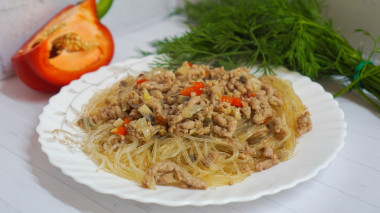 Думала, что приготовить быстрое и вкусное на обед, выручил рецепт фунчозы с фаршем и овощами.