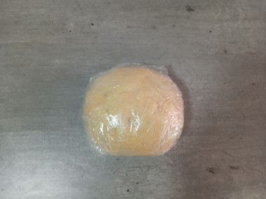 Готовое тесто скатайте в шар, заверните в пленку и положите на 30 минут в холодильник.