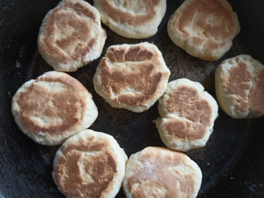 Жарьте их на самом маленьком огне до румяности, затем переверните на другую. Накройте сковороду крышкой и готовьте печенье еще минут 5.