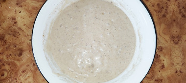Влейте воду комнатной температуры и растительное масло и тщательно перемешайте до однородности. Растительное масло берите рафинированное без запаха. У меня подсолнечное.