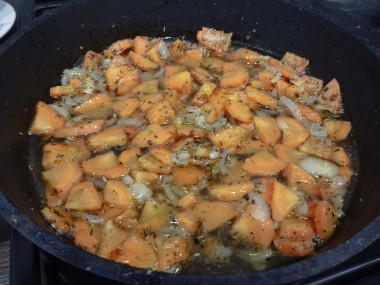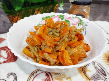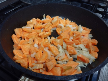 Обжарила лук, морковь с добавлением соли,перца и ароматных трав. Затем добавила немного воды и протушила до готовности.