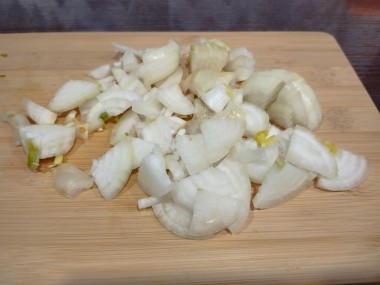 Луковицу очистите, обмойте и обсушите. Нарежьте ее средними кубиками.