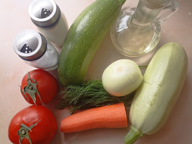 Как потушить кабачки с овощами в мультиварке? Подготовьте продукты. Кабачки, кроме молодых, можете взять и более зрелые, нужно будет лишь очистить их от кожуры и удалить семечки. Вместо красного лука подойдет и обычный репчатый, я как раз готовила с ним. Зелень и специи берите по вкусу.