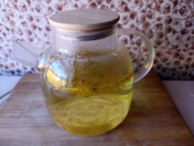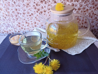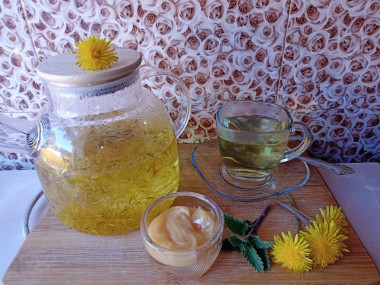 Золотистыми солнышками расцвели одуванчики и захотелось попробовать полезный чай из одуванчиков. Собранные цветочки освободила от зелёной чашечки, сложила в заварочный чайник, добавила несколько листочков мяты ( у меня лимонная), залила кипятком, дала чаю несколько минут настояться. Получился напиток лимонного цвета, с тонким цветочным ароматом и лёгким приятным травяным привкусом ( без горечи). Такой чай пробовала впервые, он мне понравился, а о его полезных свойствах очень много сказано. Спасибо за рецепт, katushafin!