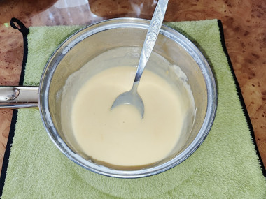 Влейте тонкой струйкой молоко, при постоянном размешивании доведите соус до однородного состояния, без комочков. Здесь вам поможет венчик.