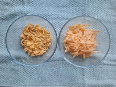 Сыр натрите на крупной терке. Сыр для этого блюда подойдет любой — твердый, полутвердый, мягкий, типа моцареллы. Главное, чтобы он был вкусным, качественным, без заменителей молочных жиров. О различных видах сыра читайте в статье по ссылке в конце рецепта.