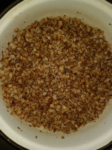 Я взяла два стакана гречки, хорошо ее промыла и прогрела на сковороде. Тут главное не отходить от плиты и все время перемешивать крупу. Как только появился характерный запах сняла сковороду с плиты. Сразу засыпала в кипящую воду (4 ст.) . Варила на самом малом огне минут 20. Затем оставила пропариться под крышкой.