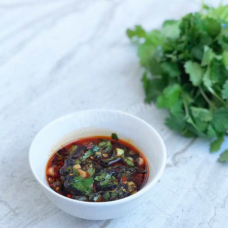 В небольшой миске взбейте масло с 1/2 чайной ложки перца горошком, чесноком, острым чили, соевым соусом, уксусом, сахаром, водой и зеленым луком.