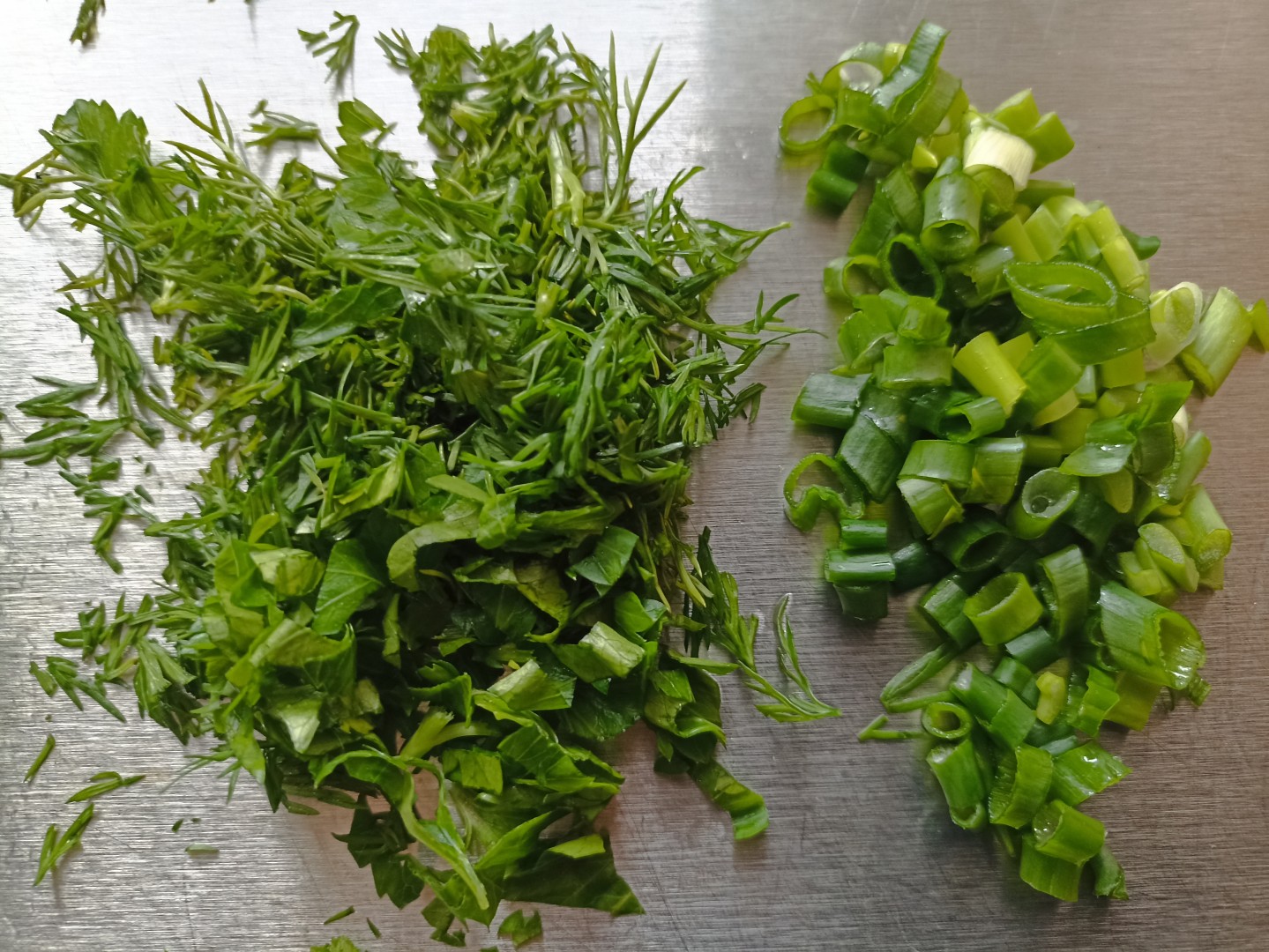 Промойте зеленый лук и зелень, обсушите салфетками и мелко нашинкуйте.Шаг 6: