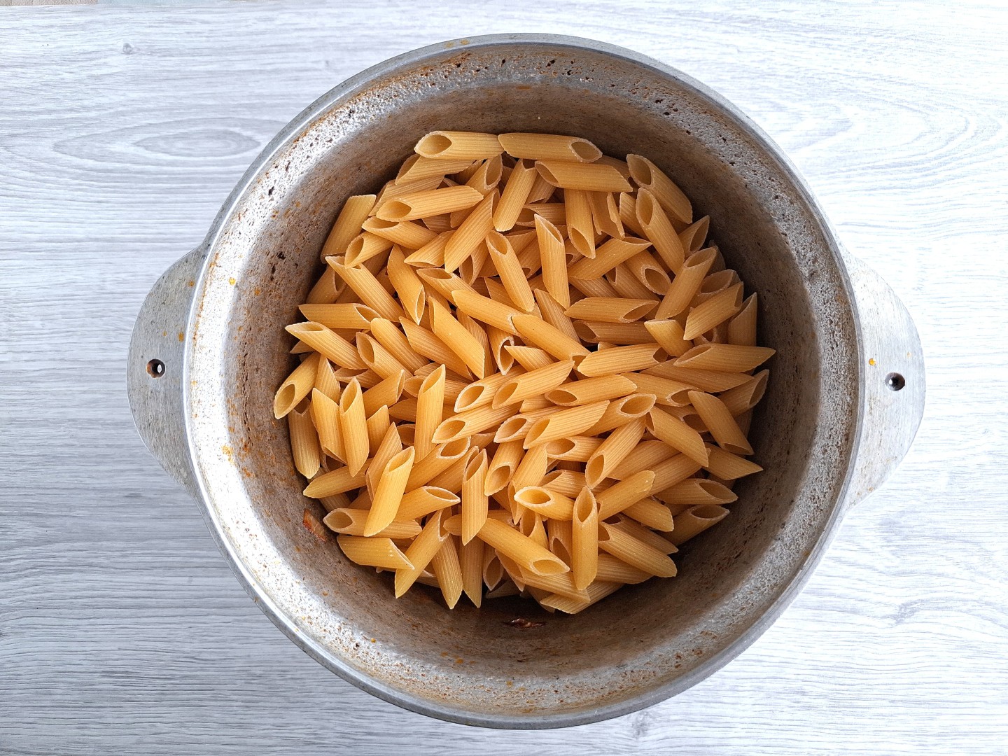 Соотношение веса макарон и воды 1:2 для меня оптимальное. За 15 минут жидкость почти полностью впиталась, но макароны сухими не стали. В сочетании с мясом получились очень вкусными!