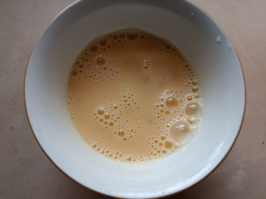 Яйцо вбейте в пиалу, добавьте к нему молоко. Взбейте яйцо с молоком вилкой, посолите и поперчите смесь. Вылейте яично-молочную смесь к макаронам. Перемешайте, пока яйцо не схватится и не загустеет.