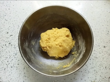 Сначала тесто замешивала венчиком, мягкое сливочное масло это позволяет. Затем добавила кукурузную муку, немного помешала ложкой и домесила руками. Тесто очень податливое, не липкое, из него легко скатывать шарики.