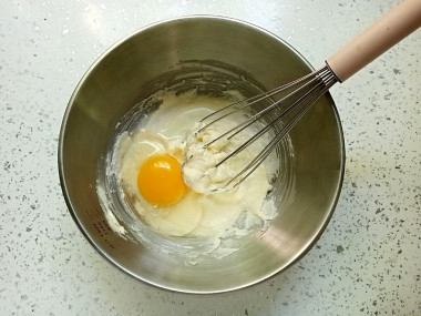 Сразу включите разогреваться духовку на 180°С. Мягкое масло положите в миску. Если у вас мало времени и вы не успели его достать, то прогрейте масло несколько секунд в микроволновке, но не до жидкого состояния, а до мягкого. Всыпьте к маслу сахар и щепотку ванилина. Хорошо разотрите масло с сахаром венчиком до легкой пышности.