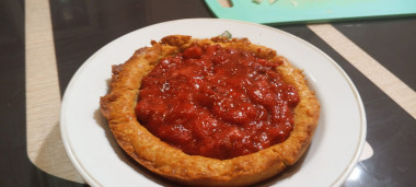 В целом, рецепт классный,только вот тесто получилось не совсем той консистенции, что в рецепте, - без добавления воды не формировалось в нужную кондицию, а после добавления двух столовых ложек воды стало слишком липким, дополнительное введение муки не помогло, охлаждение - тоже. Но в итоге я победила. И да, к моменту формирования самого тарта я обнаружила, что пергамент закончился, поэтому пришлось обходиться без груза, а дно формировать по мере выпекания дном стакана. Протыкание вилкой тоже не спасло ни до выпекания, ни уже в процессе. Пришлось добавить щепотку смекалки, но в итоге всё получилось. Боялась, что начинки будет много, но на самом деле она уютно улеглась всей массой в предложенную форму. Извлечение проблем не вызвало, переместила из чугунной сковородки в тарелку без повреждений. Масло брала супер замороженное, аж хрустело, аки снег, когда резала. Пробу еще не снимала, но есть подозрения, что 100 гр сахара на начинку - многовато. В любом случае, большое спасибо автору, буду дальше экспериментировать, дабы подогнать под вкусы своих домочадцев. Фото прилагаю, да, не Апполон, но вполне себе симпатяга:)
