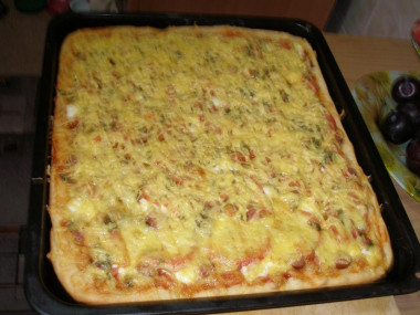 Пицца получилась замечательная! Тесто очень мягкое. Порция огромная, на весь противень. Раньше делала пиццу на покупных коржах. Соблазнилась этим рецептом и не пожалела.
