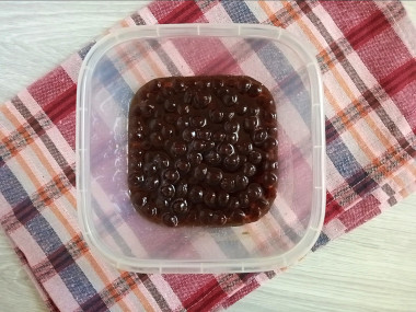 В прошлый раз я сварила сироп из сахара и воды в равных пропорциях. В этот раз использовала сироп тапинамбура. В обоих случаях получилось вкусно. Настаивала два часа в холодильнике. Сами шарики имеют нейтральный вкус, а сироп придает тапиоке интересный привкус.