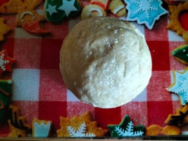Готовое творожное тесто скатайте в шар, заверните в пленку и уберите в холодильник на 40 минут.