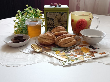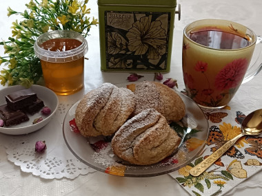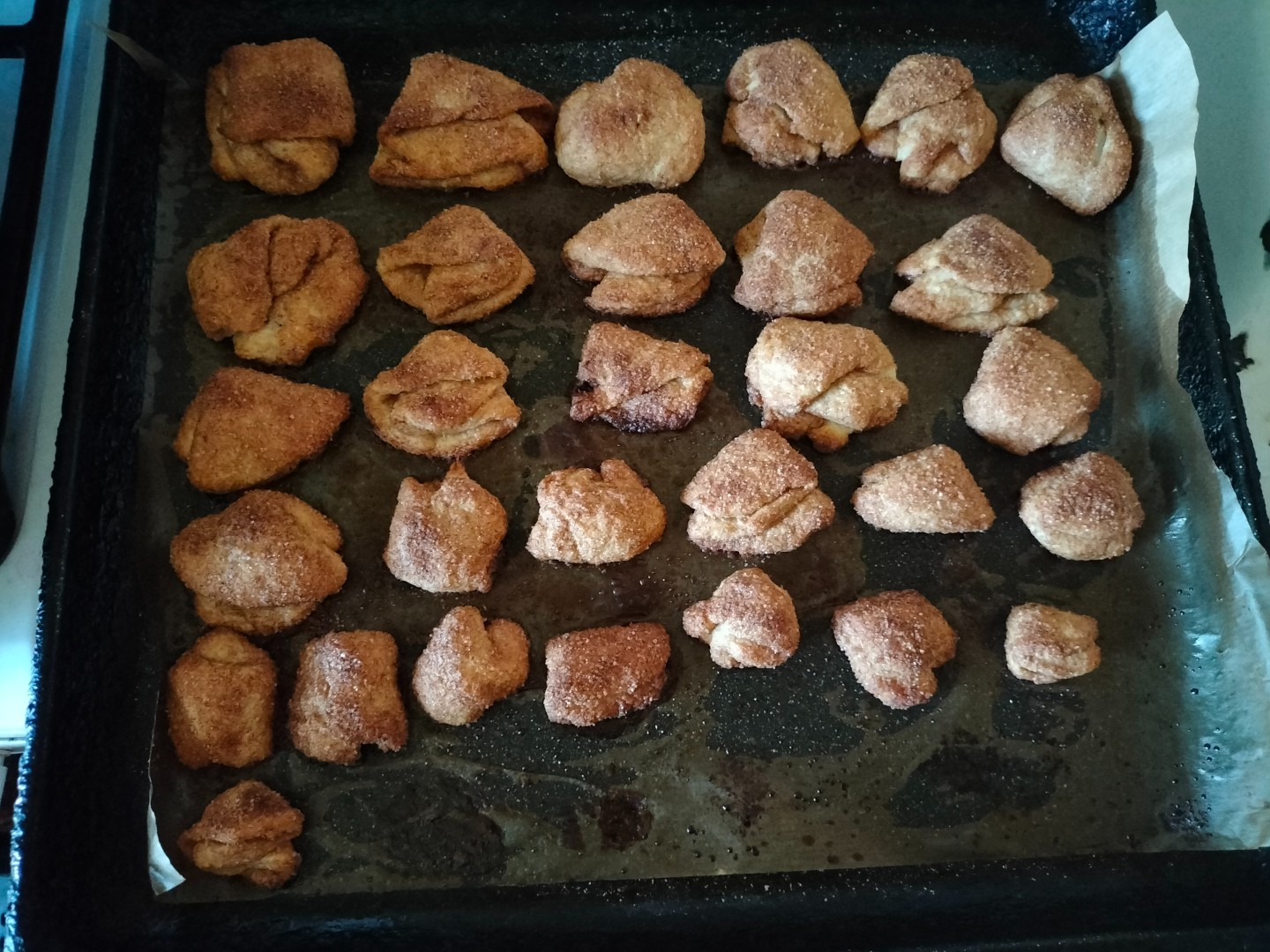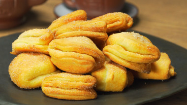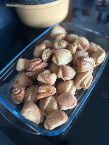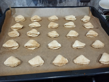 А у нас оно называется гусиные лапки) делаем посередине треугольников надрез) и корицу некогда не добавляли, просто сахаром присыпали, надо попробовать. А так оч вкусное печенье получается, одно из любимых.