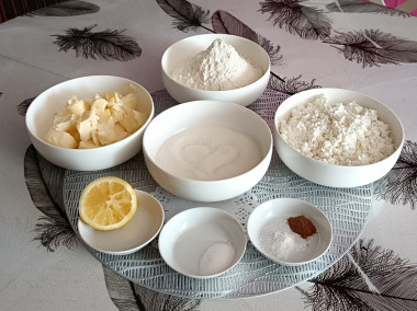 Заглянула в холодильник и взгляд упал на творог.Пора бы из него что то вкусненькое приготовить. Например творожное печенье в духовке. Нашла подходящий рецепт, подготовила все необходимые продукты и приступила к замесу теста.