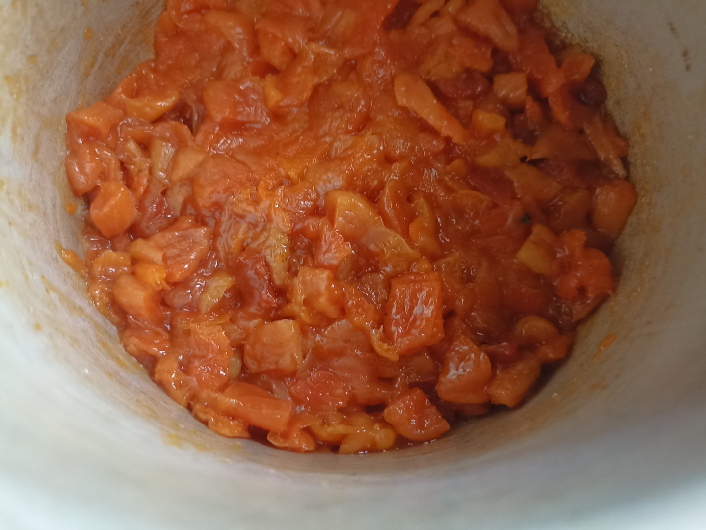 По желанию добавьте в начинку сахар по вкусу, перемешайте. Я добавила совсем немного, так как курага была достаточно сладкая.