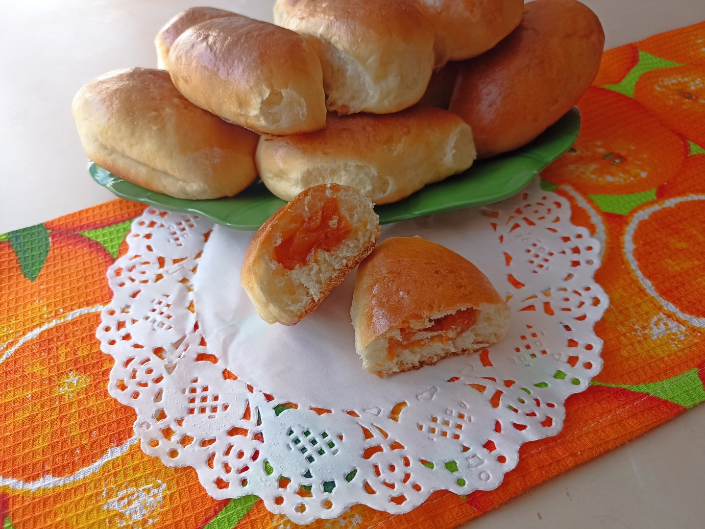 Пирожки из дрожжевого теста с курагой подавайте к столу. Приятного аппетита!