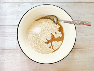 Влейте к муке растительное масло, снова перемешайте.