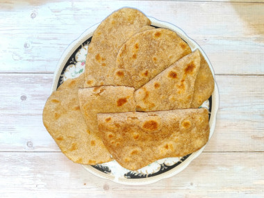 Лепёшка роти индийская отличная альтернатива хлебу, особенно, для ценителей выпечки из цельнозерновой муки. Тесто замешивается легко и быстро, если следовать по рецепту) и получается мягким и податливым. В тесто я добавила столовую ложку кунжутного масла и ложку масла авокадо. А вместо обычной воды отвар броколли, лепёшки роти получились ещё вкуснее. Хороший рецепт индийского "хлеба".