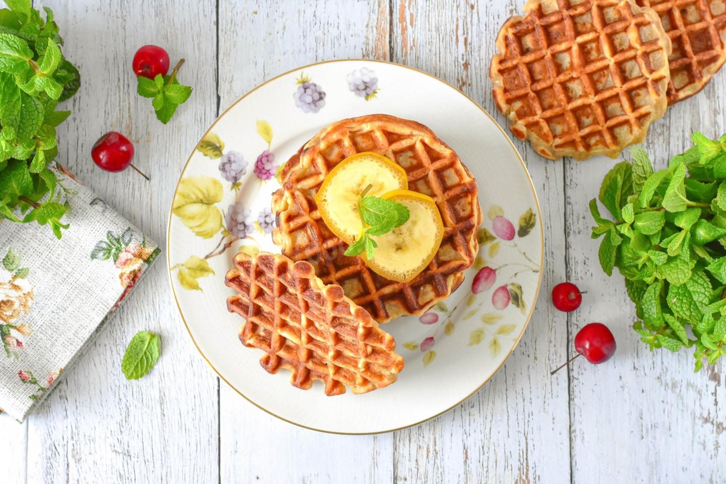 Шаг 7. Как подавать творожные вафли с бананом?