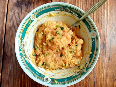 Веточки петрушки ополосните, мелко нарежьте и добавьте в чашу. Все ингредиенты хорошо перемешайте до однородной консистенции. Готовое мясное тесто не должно быть ни жидкое, ни густое. Для большей пышности можно добавить немного соды.