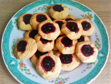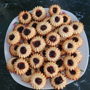 ), у меня такой не оказалось. И ещё - в рецепте не зря указано использовать СИЛИКОНОВЫЙ кондитерский мешок и БОЛЬШУЮ насадку (в первый раз два одноразовых мешка мне пришлось выкинуть). Ну и про результат. Может быть на фото моё курабье печенье песочное с повидлом и не такое красивое, как у автора, но оно очень вкусное! Печеньки рассыпчатые, ароматные, с нежным сливочным вкусом и кислинкой от джема!!! Однозначно теперь буду использовать только этот рецепт. Спасибо автору!