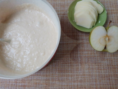 Наше тесто на оладьи готово! Пусть оно полежит немного, пока мы займемся яблоками.