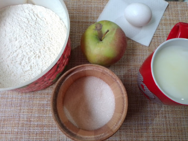 Как сделать оладьи с начинкой из яблок на кефире пышные? Подготовьте необходимые ингредиенты. Яблоки хорошо помойте и оботрите. Кефир можете брать любой жирности, я взяла густой.