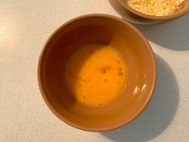 Яйца вбейте в отдельную мисочку и разболтайте при помощи вилки.