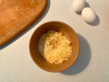 Подготовьте панировочные сухари. Всыпьте их в тарелку с бортиками. Натрите сыр на мелкой терке в тарелку к сухарям. Всыпьте куркуму и соль. Перемешайте. Также можно добавить другие специи по вкусу. Подробнее о подходящих вариантах читайте в конце рецепта.