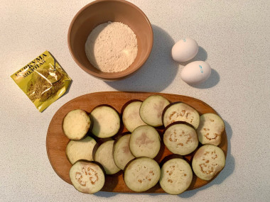 Баклажан помойте, отрежьте кончики. Нарежьте баклажан на кольца толщиной примерно 5мм.