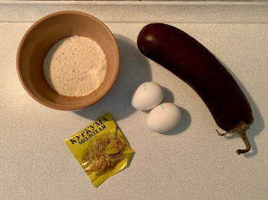 Как вкусно пожарить хрустящие баклажаны в панировочных сухарях кружочками на сковороде? Подготовьте продукты. Баклажан возьмите один крупный или два небольших. Сыр подойдет любой твердый. Куркуму можете не использовать. Также можете добавить любимые специи.