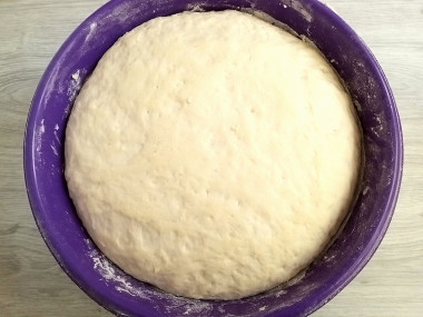 Для теста сначала активировала дрожжи. Затем соединила все жидкие продукты и вылила их в большую миску с просеянной мукой. Муки у меня ушло на 100 г. больше. Тесто очень хорошо подошло, за час (на столе) заполнило всю миску. Тесто эластичное и податливое, из него удобно формировать пирожки.