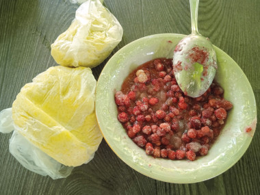 Подготовьте продукты для начинки. Землянику и яблоки предварительно разморозьте, если они у вас замороженные.