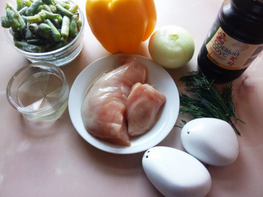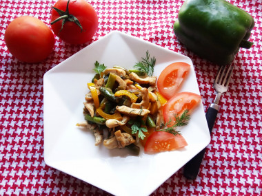 Приготовила теплый салат с фасолью стручковой. Для заправки вместо бальзамического уксуса взяла яблочный, вместо сухого укропа - свежий, ну и вместо красного болгарского перца пришлось использовать жёлтый))). Салат получился отменный! Обжаренное куриное филе прекрасно сочетается с обилием овощей и пикантной заправкой. Сочно и очень вкусно! Спасибо за рецепт, Alyonka!