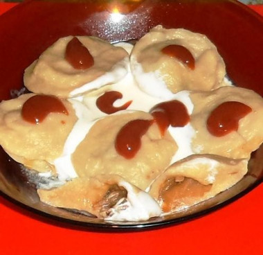 Подавать пельмени можно со сметаной, майонезом, зеленью или маслом. Иногда их подают с томатным соусом или протертым хреном и даже с винным уксусом.