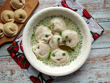 Подавайте пельмени с бульоном, в котором они варились или без него. Приятного аппетита!