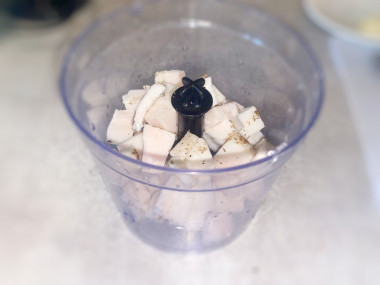 Прокрутите кусочки сала и зубчики чеснока на мясорубке. Для измельчения можете использовать комбайн, блендер или измельчитель.