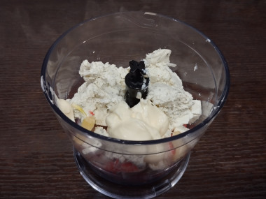 Тщательно пробейте все ингредиенты до однородности. Попробуйте, при необходимости посолите намазку и еще раз взбейте массу блендером. Вы так же можете дополнительно добавить любые специи, ориентируясь на вкусовые предпочтения.