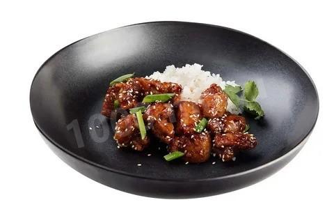 Посыпать курицу кунжутными семечками и зеленым луком. Подавать вкусно с рисом.