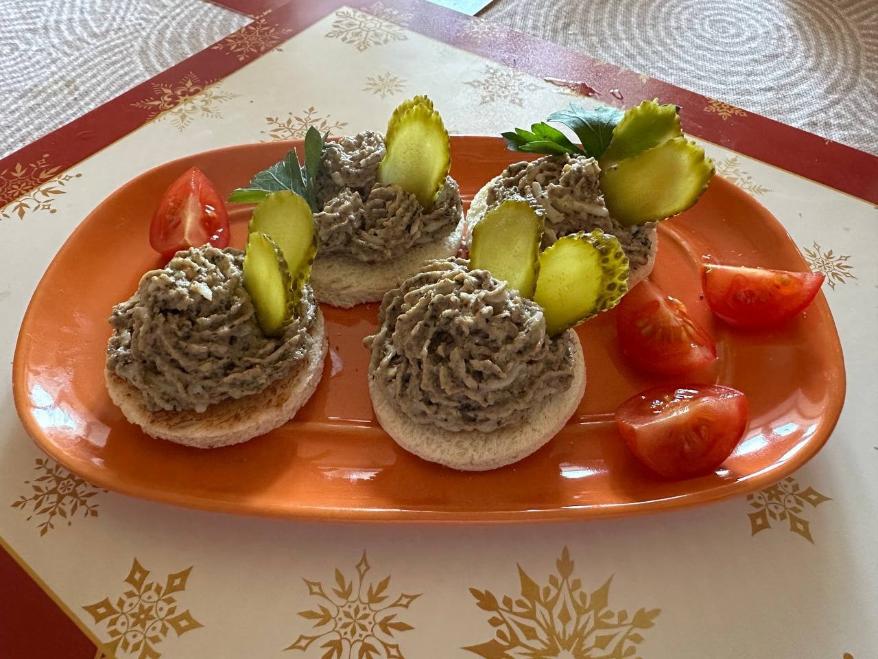 Рецепт идеально пригодился для украшения новогоднего стола! Вместо привычных бутербродов со шпротами, такая намазка будет выделятся, но самое главное -вкусно