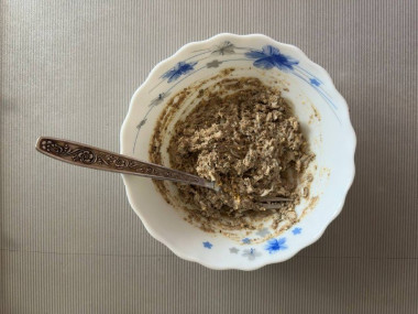 Яйца натерла на мелкой тёрке,а остальные ингредиенты взбила блендером. Соединила с яйцами и перемешала.
