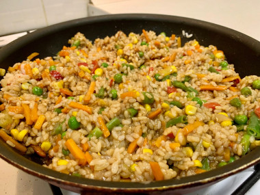 Приготовила жареный рис по китайски. Могу отметить, что это блюдо — отличное решение для быстрого ужина. Оно сытное и в то же время легкое. А возможность варьировать состав овощей и добавлять, например, куриное филе, делает его очень многофункциональным.