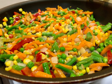 Т.к мне хотелось сделать быстрый ужин, я решила использовать готовую замороженную смесь овощей.