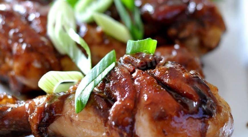 В финале наносим на поверхность остальной соус хойсин из баночки густым слоем и запекаем еще 5 минут.